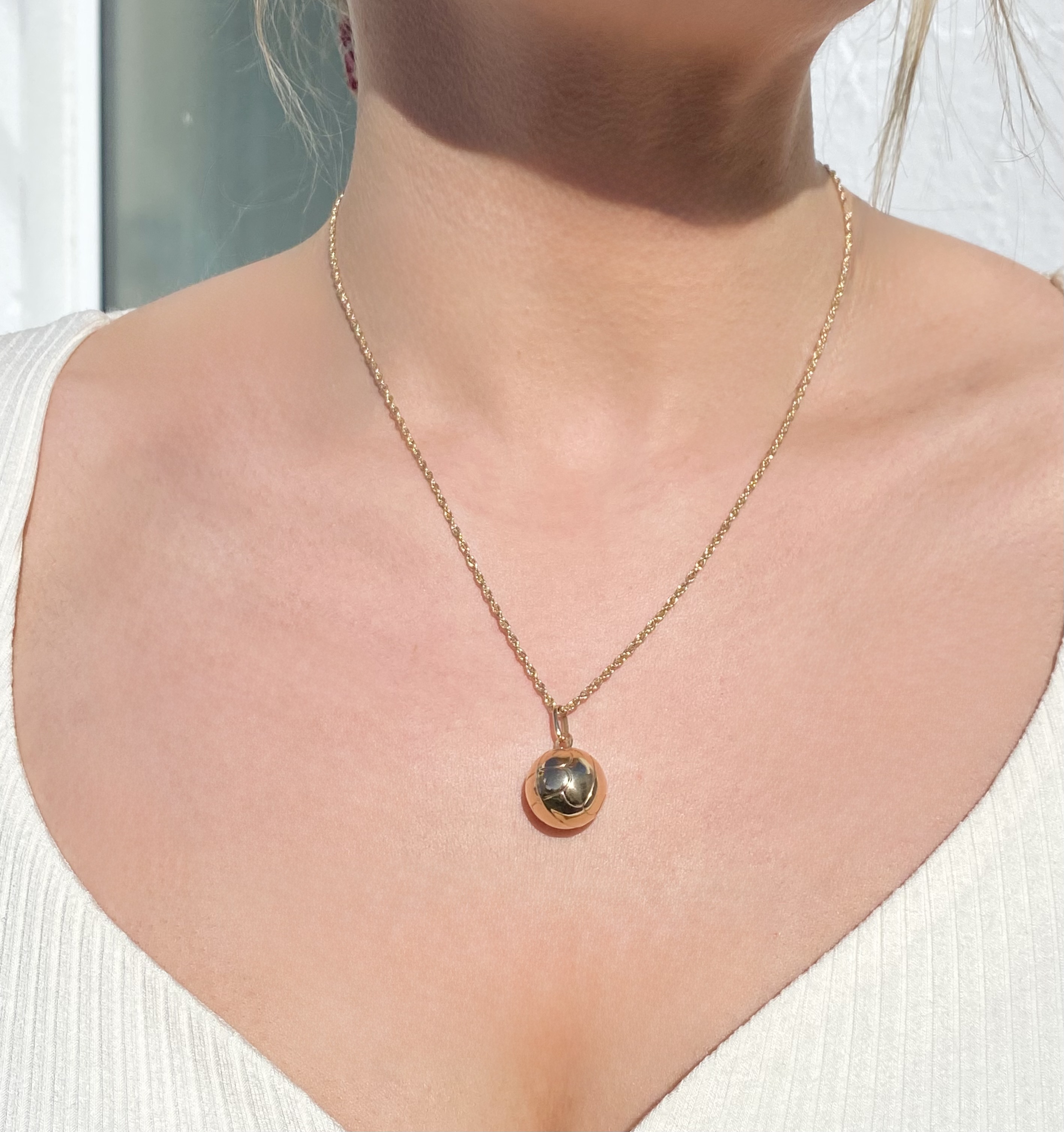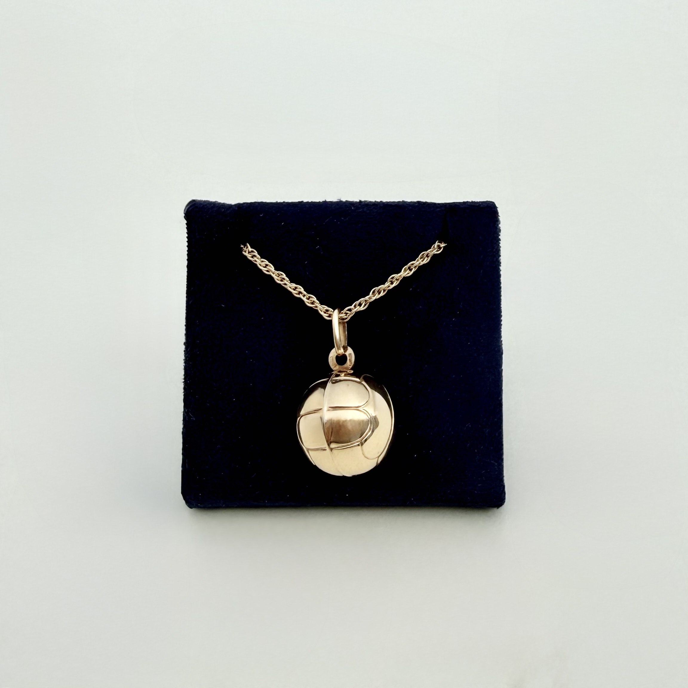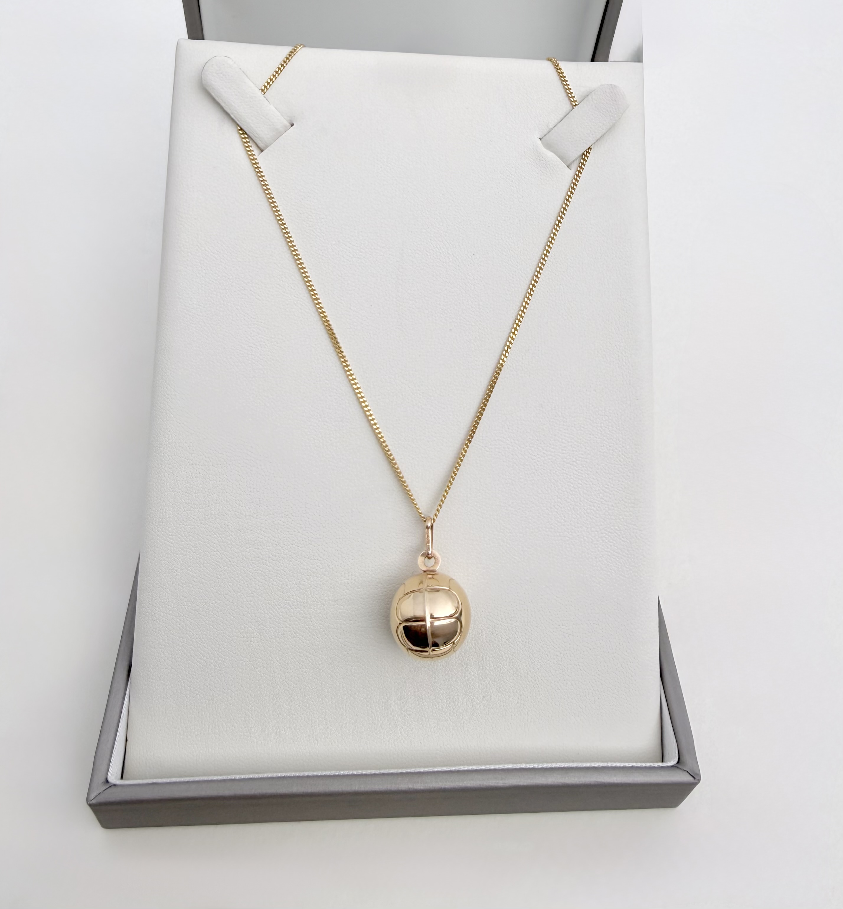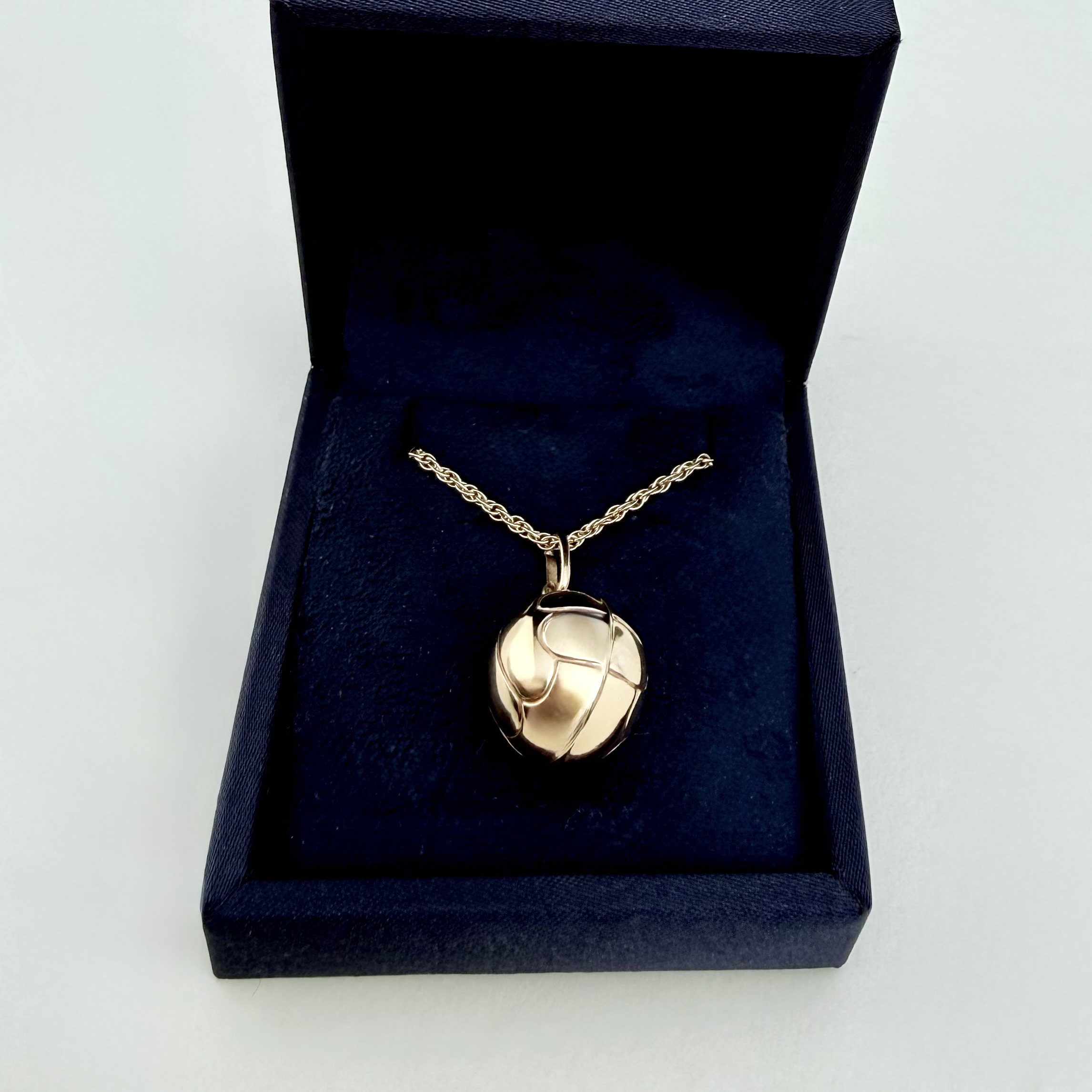This versatile pendant can be purchased on its own or paired with (A) an elegant 18" (46 cms) chain crafted from gold on hallmarked sterling silver - shown in final 3 images (no. 8, 9 and 10) or (B) a 9ct. gold spiral link 18" (46 cms) chain - shown in all other images, which can be bought separately on website. A stylish piece for football fans or anyone looking for a unique gold accessory.