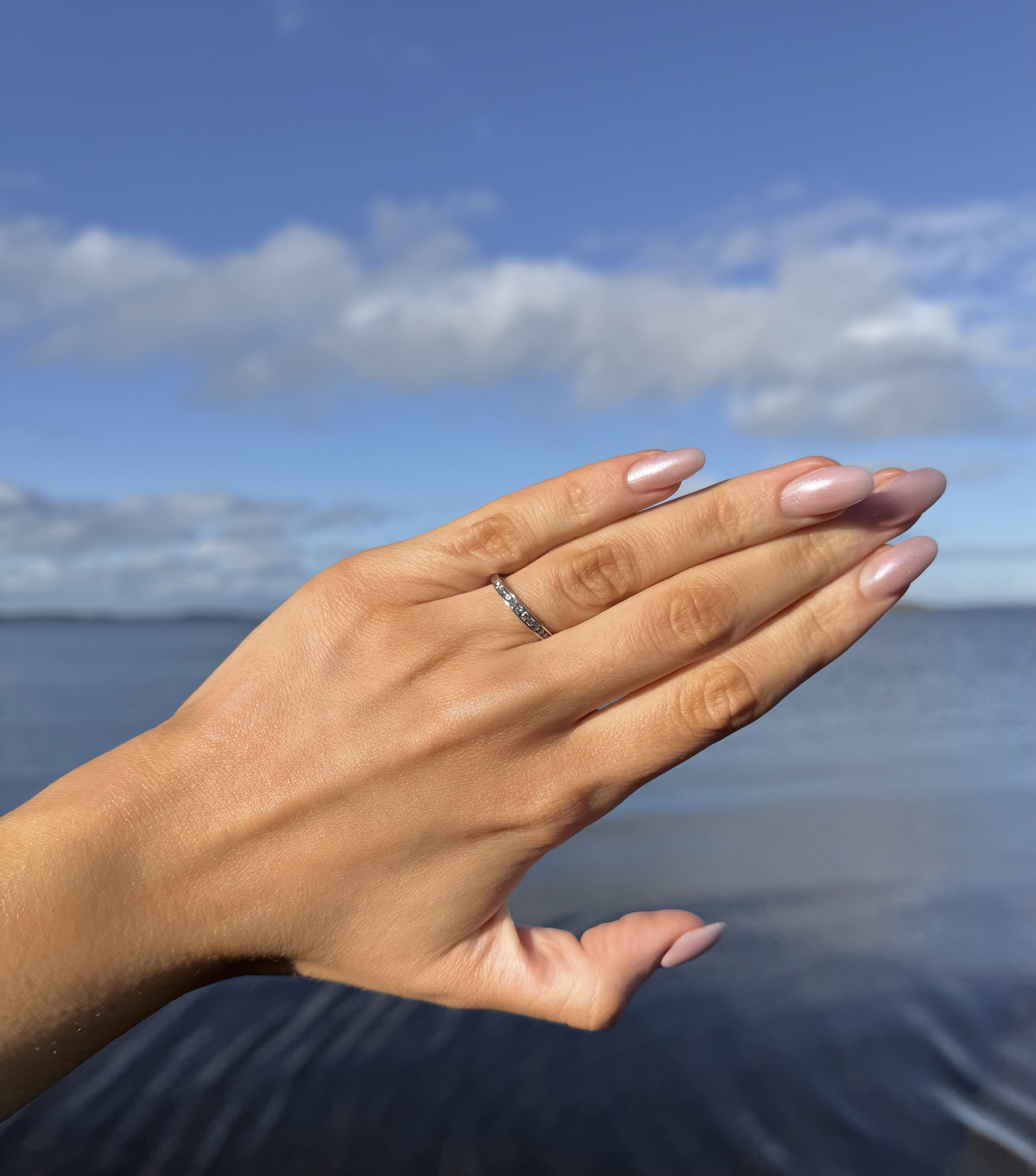 A classic half-eternity design symbolising enduring love, this ring makes a wonderful gift, anniversary piece, or beautiful addition to any jewellery collection.