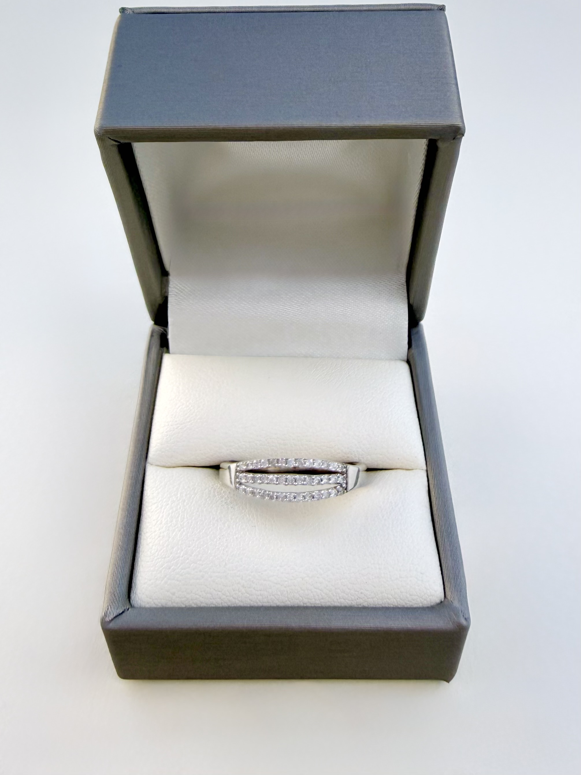9ct. White Gold Three-Row Half Eternity Ring. NEW STOCK.