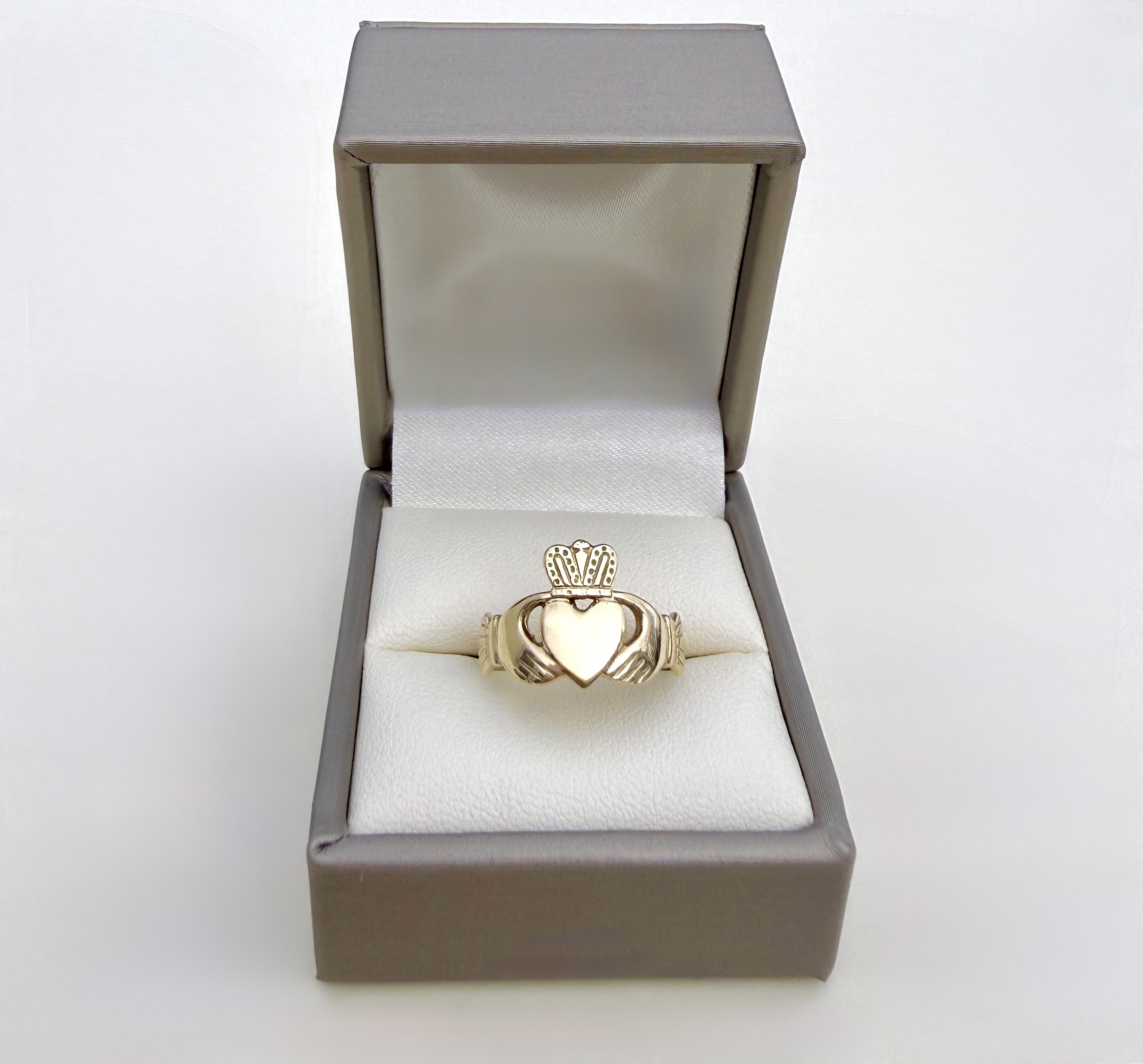 The Claddagh’s story reaches even further back, drawing inspiration from the European Fede ring, whose clasped hands symbolised faith and trust. By adding the crowned heart, the Claddagh transformed this ancient motif into a distinctly Irish emblem of enduring love and allegiance.