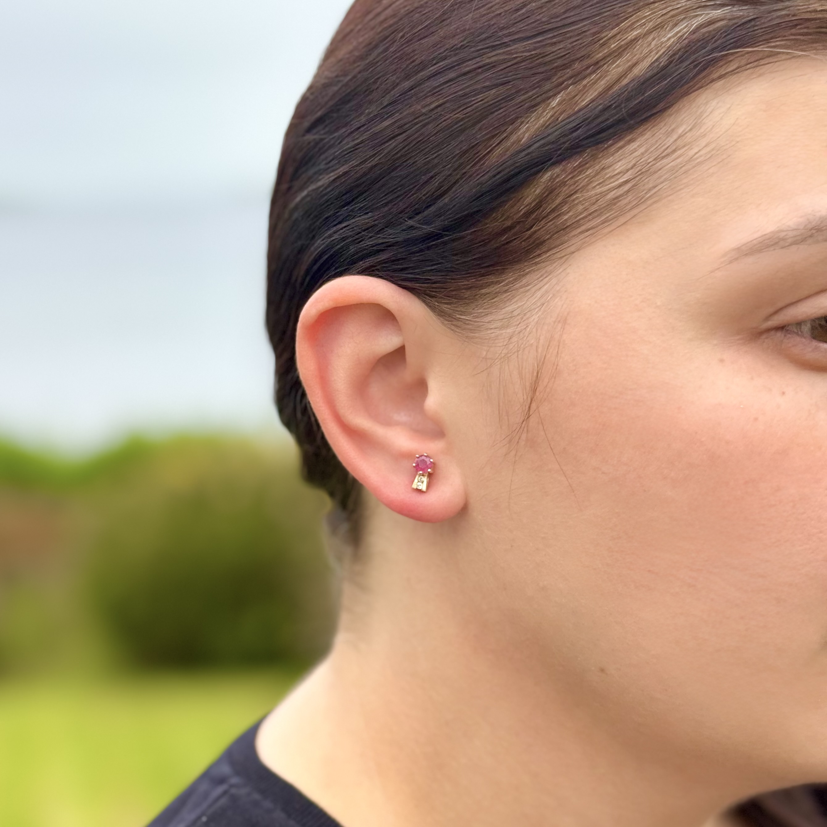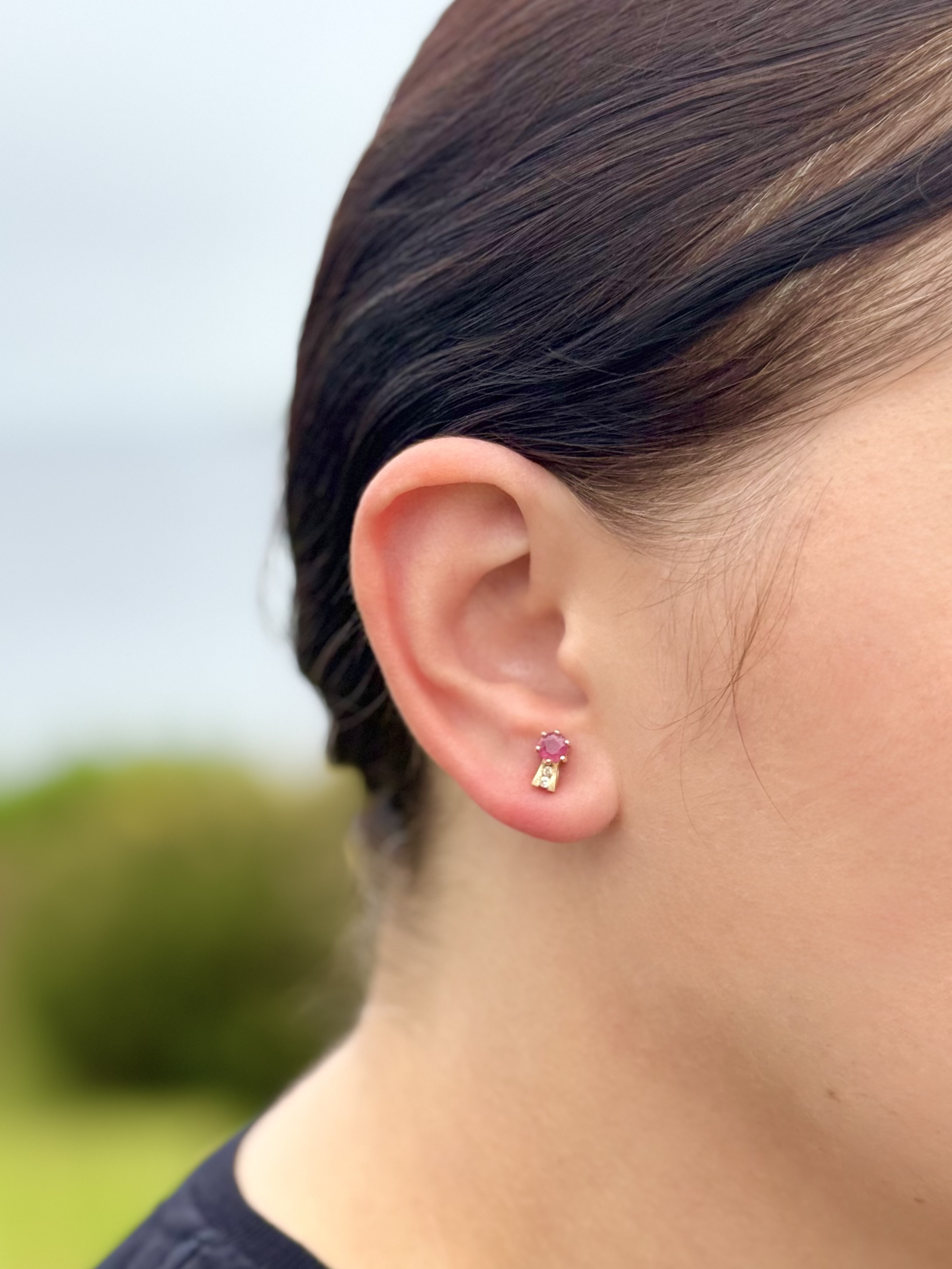 Ruby & Diamond Gold Stud Earrings.