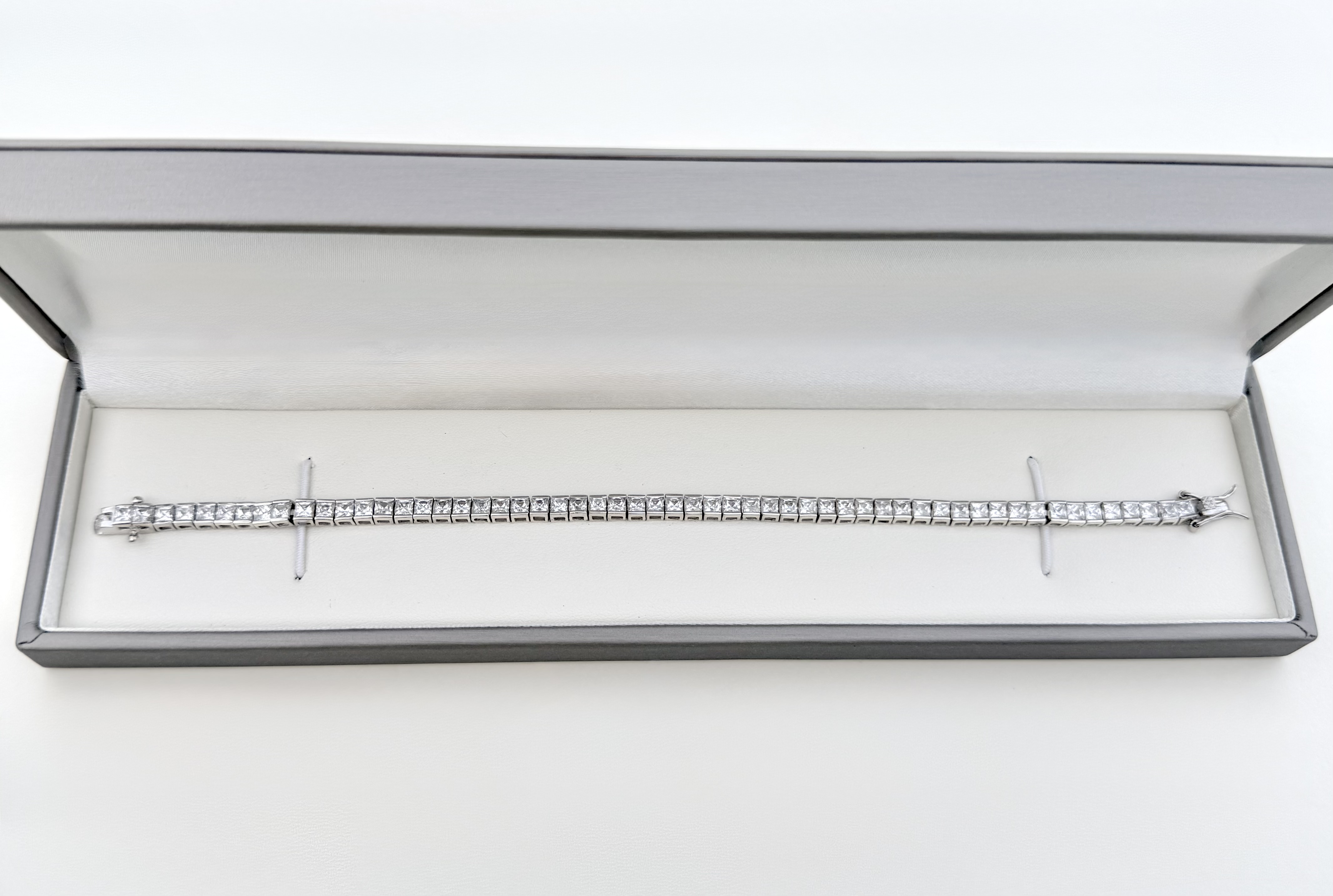 Silver Tennis Bracelet with Square-Cut CZ's. NEW IN.