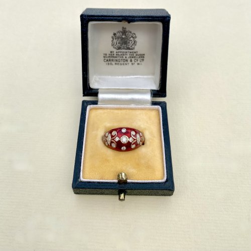 14ct. Gold Diamond & Red Enamel Bombé Ring.