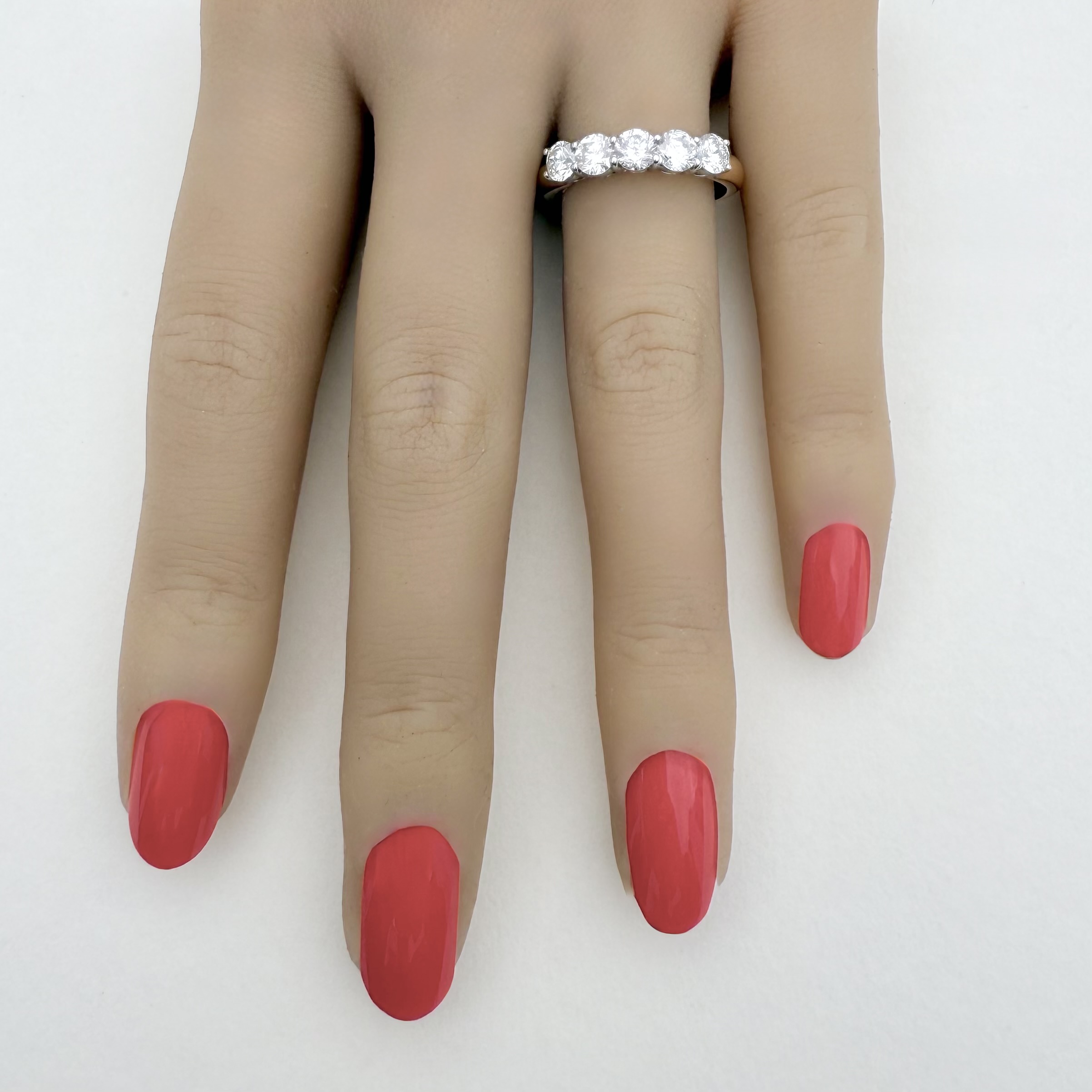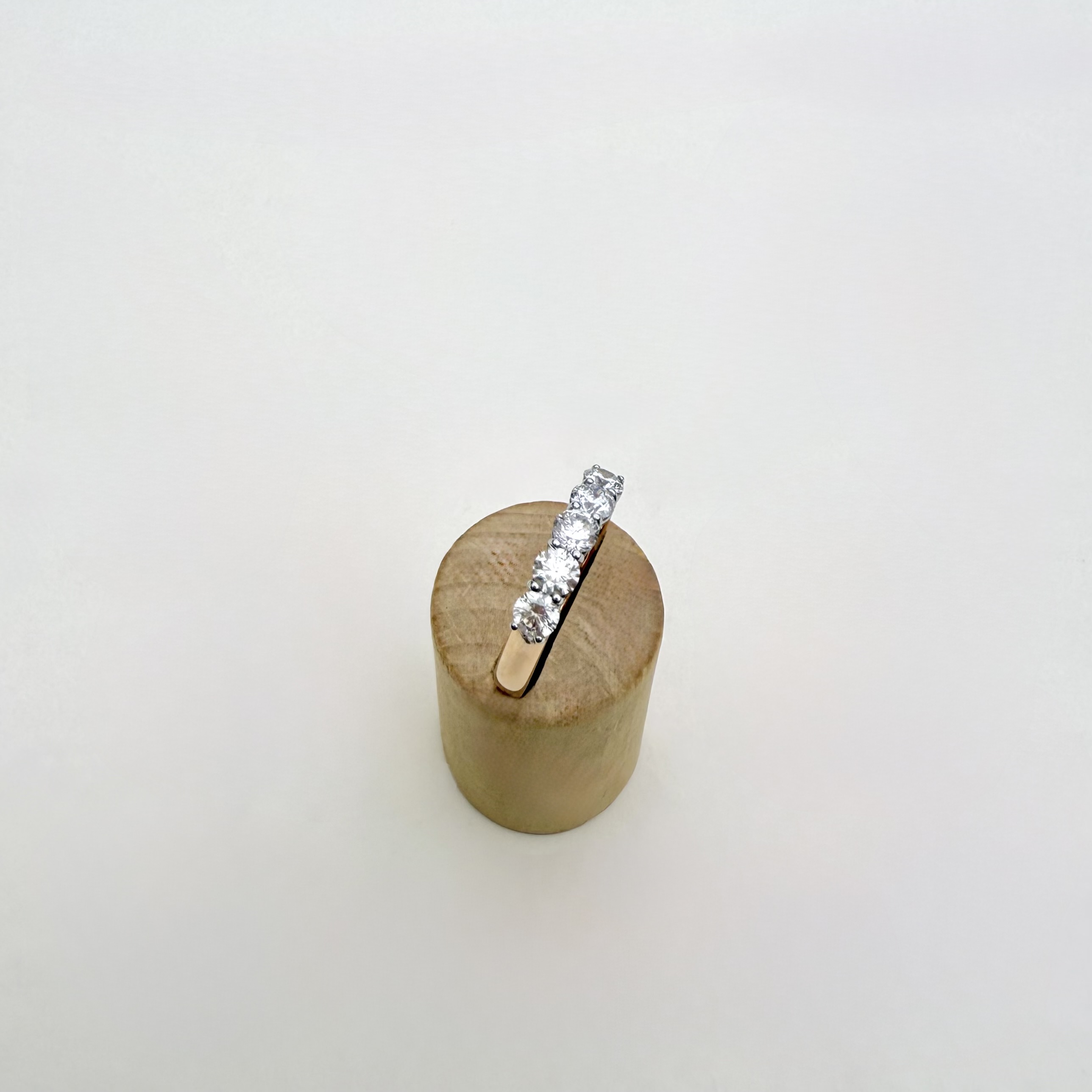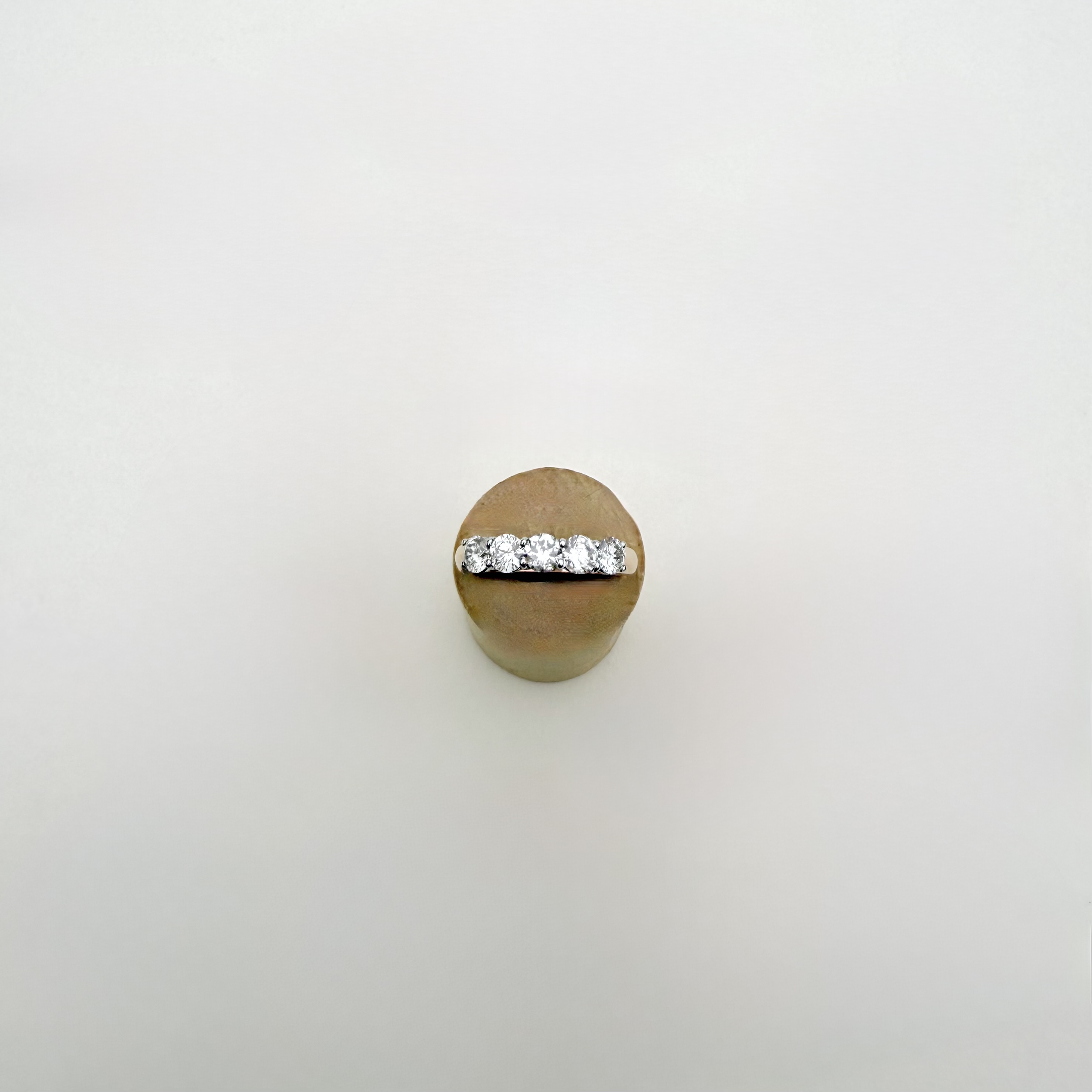 Hallmarked 18ct. yellow gold 5-stone diamond set ring. Five round brilliant cut diamonds of Total: 1.28 carat and good colour. Diamonds are bright, white, sparkly and well matched. Weighs: 3.02 gms. V. 4,247. Size: L¾ (just under an “M”). Independent valuation certificate provided√