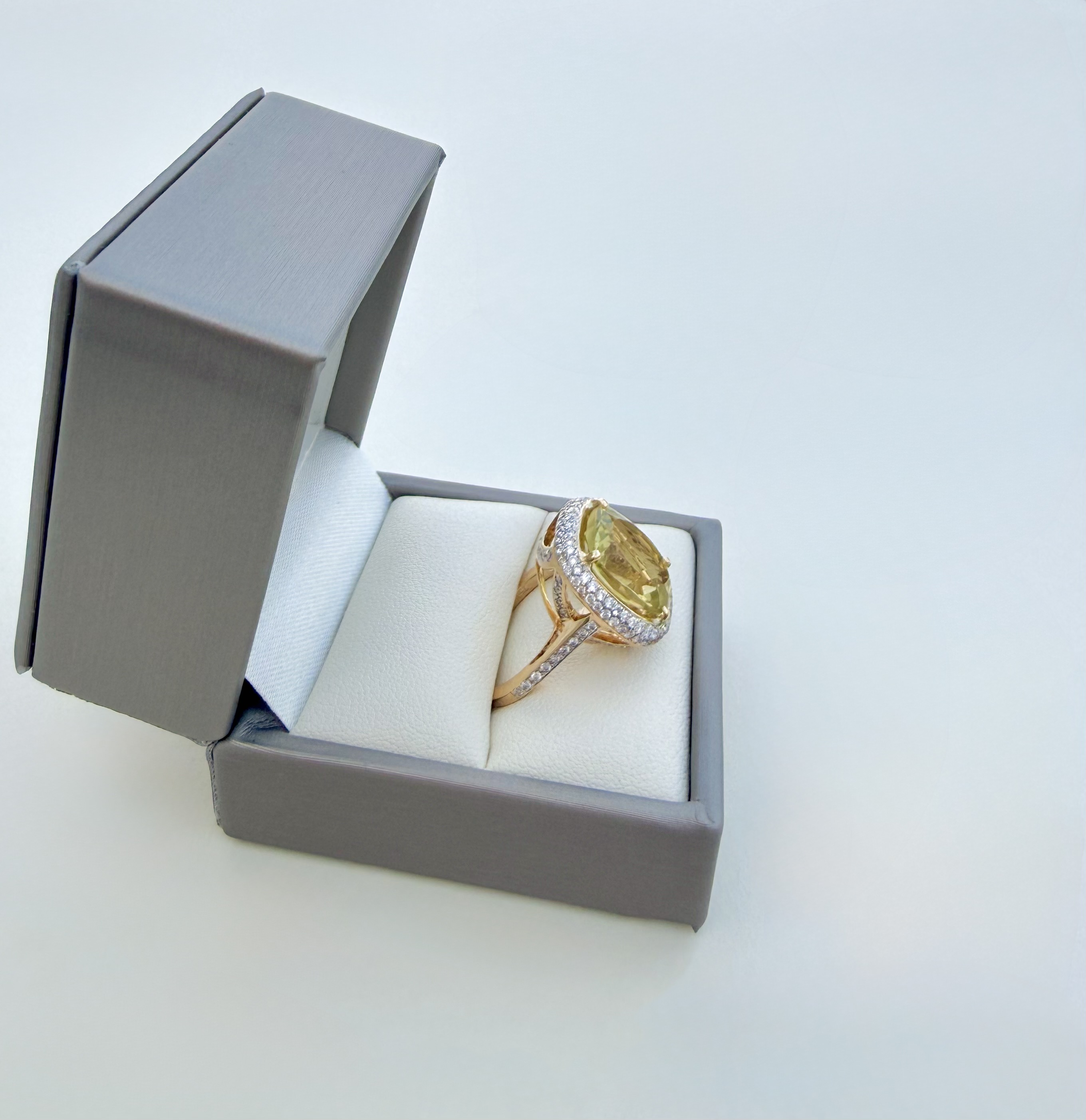 This exquisite hallmarked 18ct. yellow gold ring features a captivating lemon quartz centre stone of excellent quality, expertly set in a classic four-claw setting. Measuring 12.10mm x 10.10mm with a depth of 6.78mm, this vibrant gemstone radiates a sunny, luminous glow.