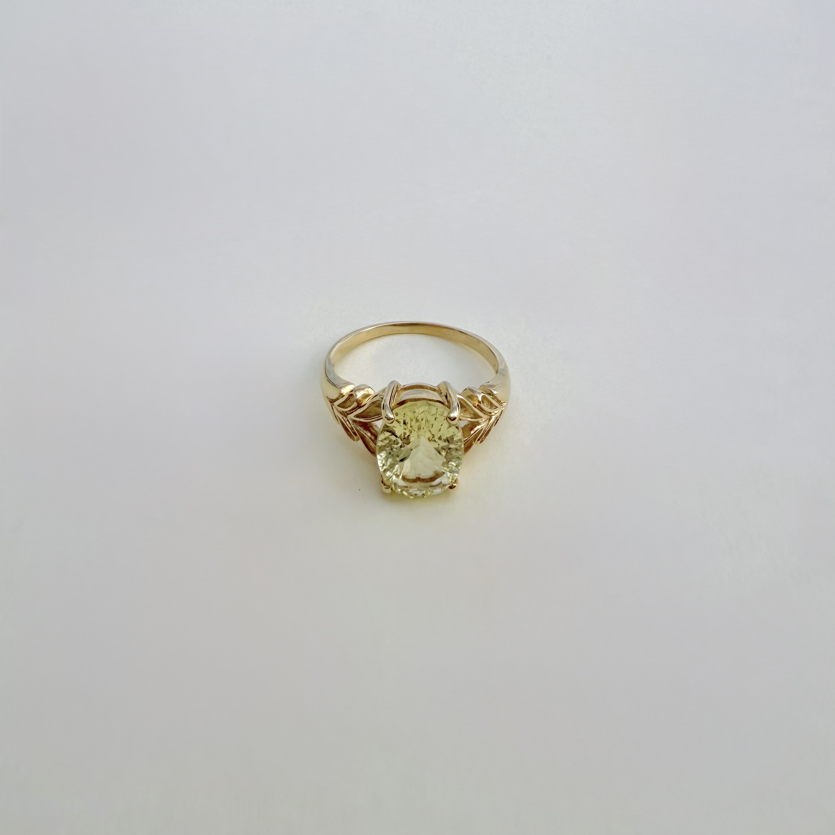9ct. Gold Citrine Set Ring / Acanthus Foliage Design.