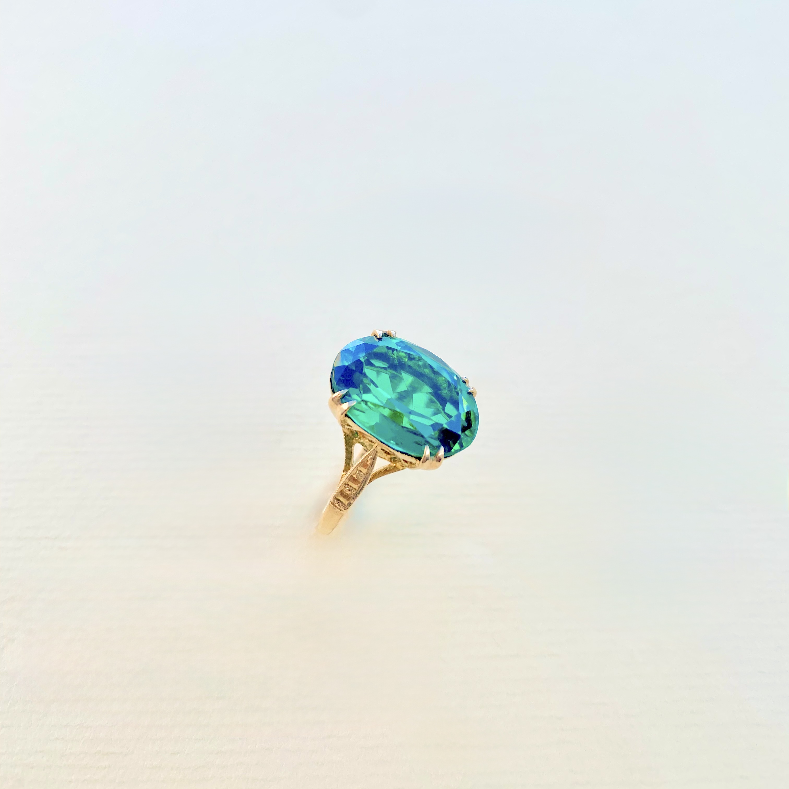 9ct. Solid Gold Ring with Vibrant Green Faceted Stone.
