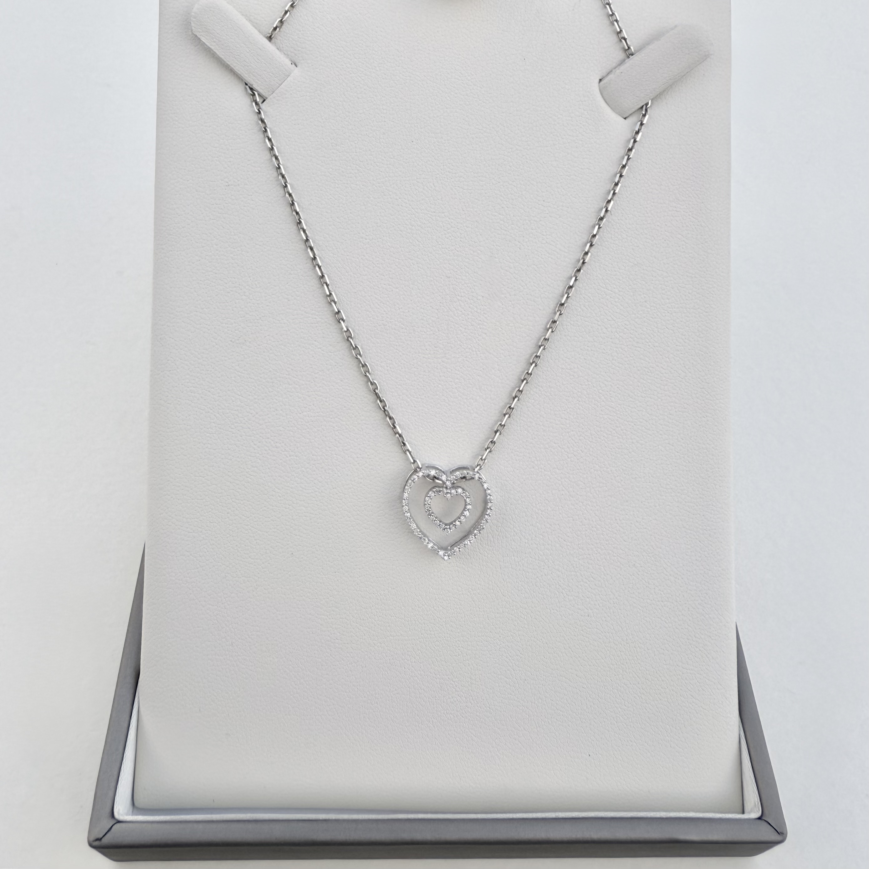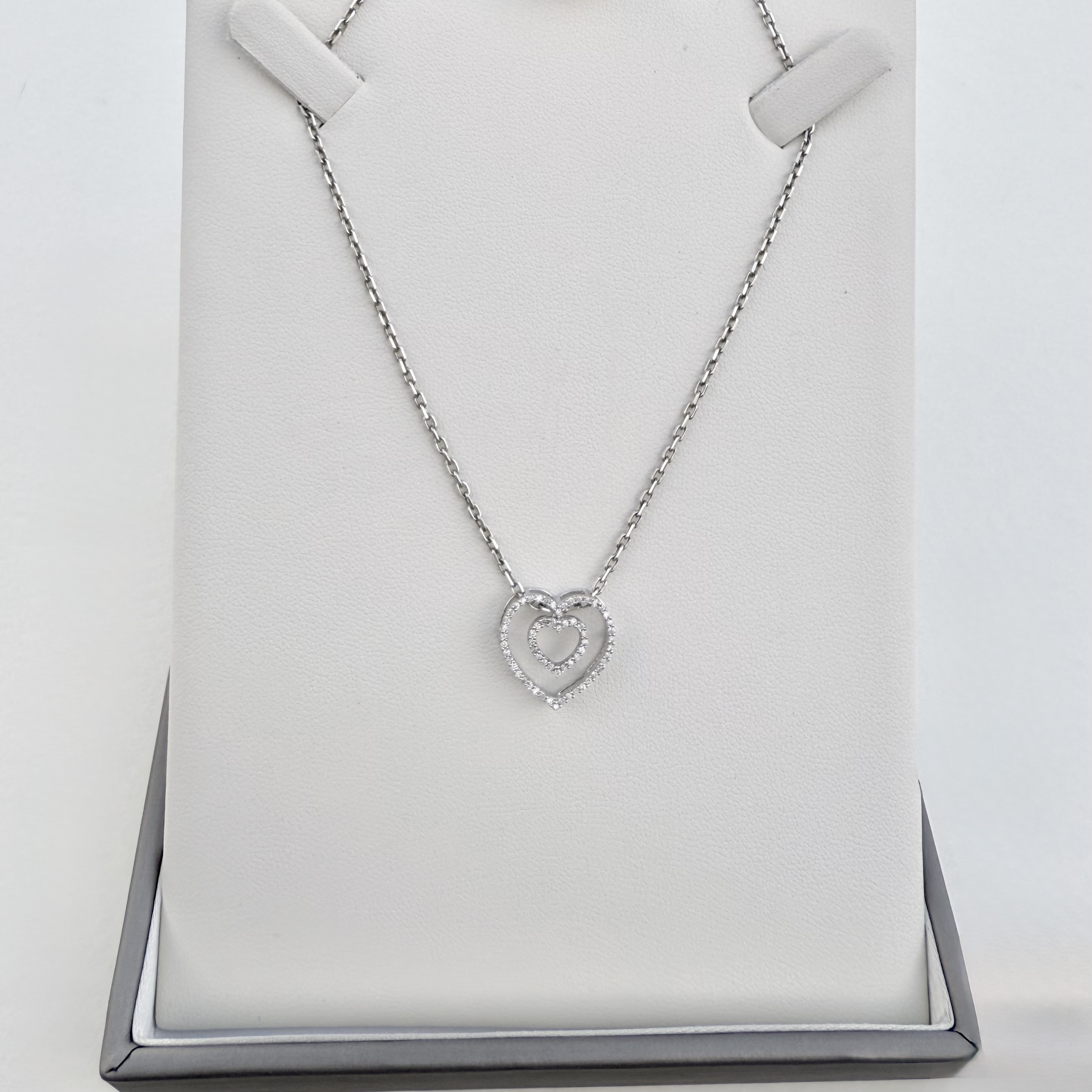 Exquisite double-heart pendant, meticulously crafted in hallmarked 9ct. white gold and adorned with natural diamonds that sparkle with every movement.