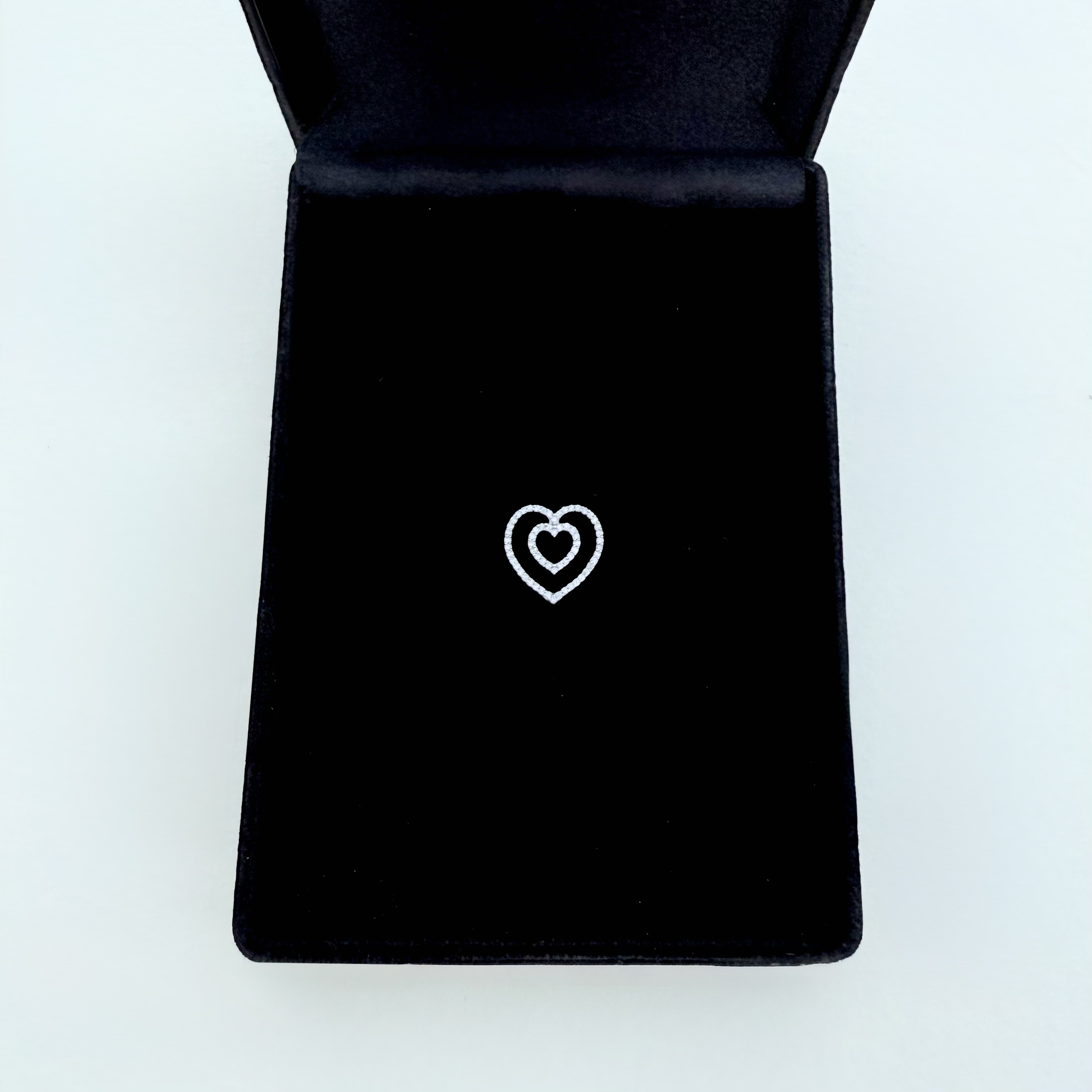 The outer heart measures Height: 15.09 mm (1.5 cms.) and Width: 15.32 mm. (= 1.53 cm / 0.6”), encircling a perfectly proportioned inner heart measuring:  7.91 mm by 8.11 mm.