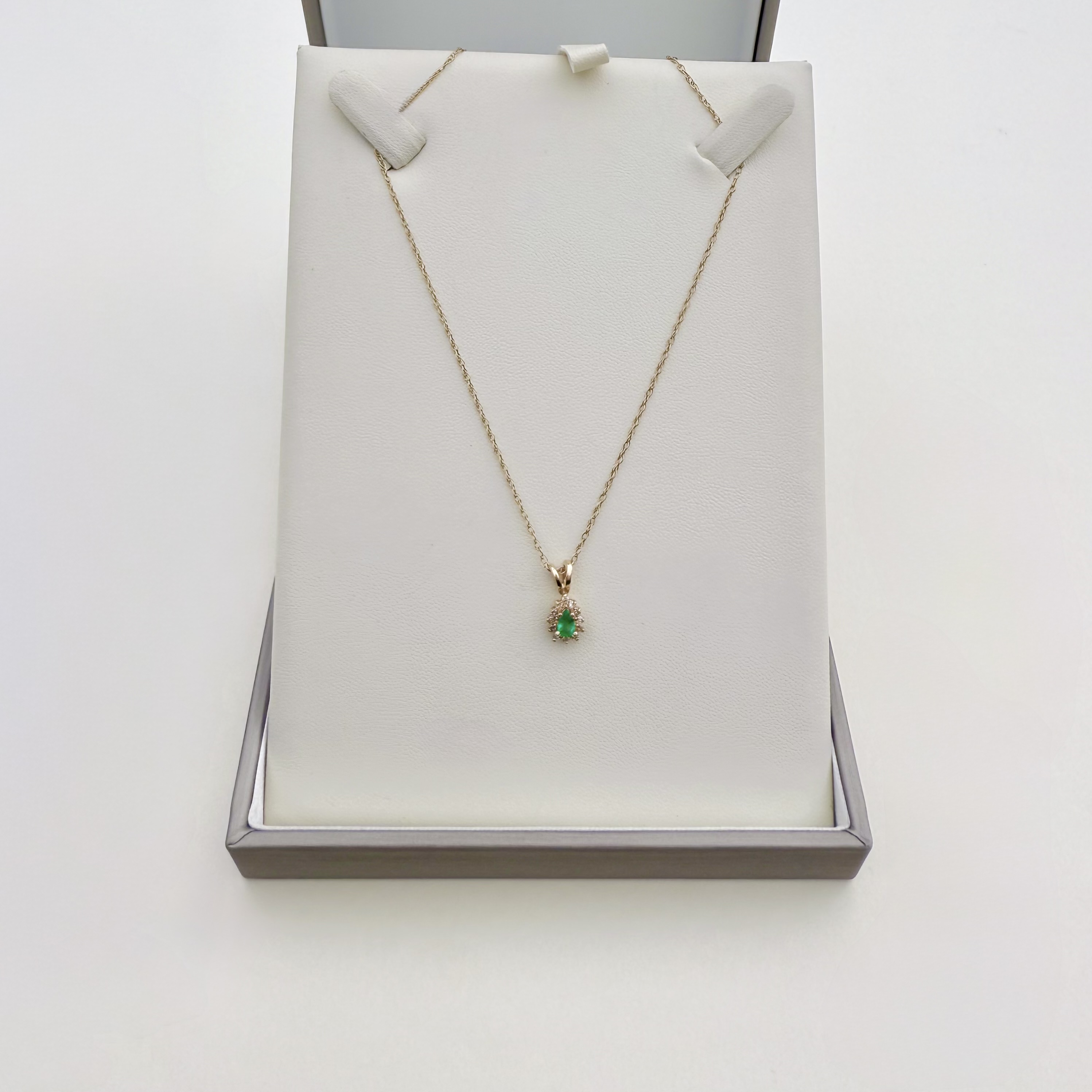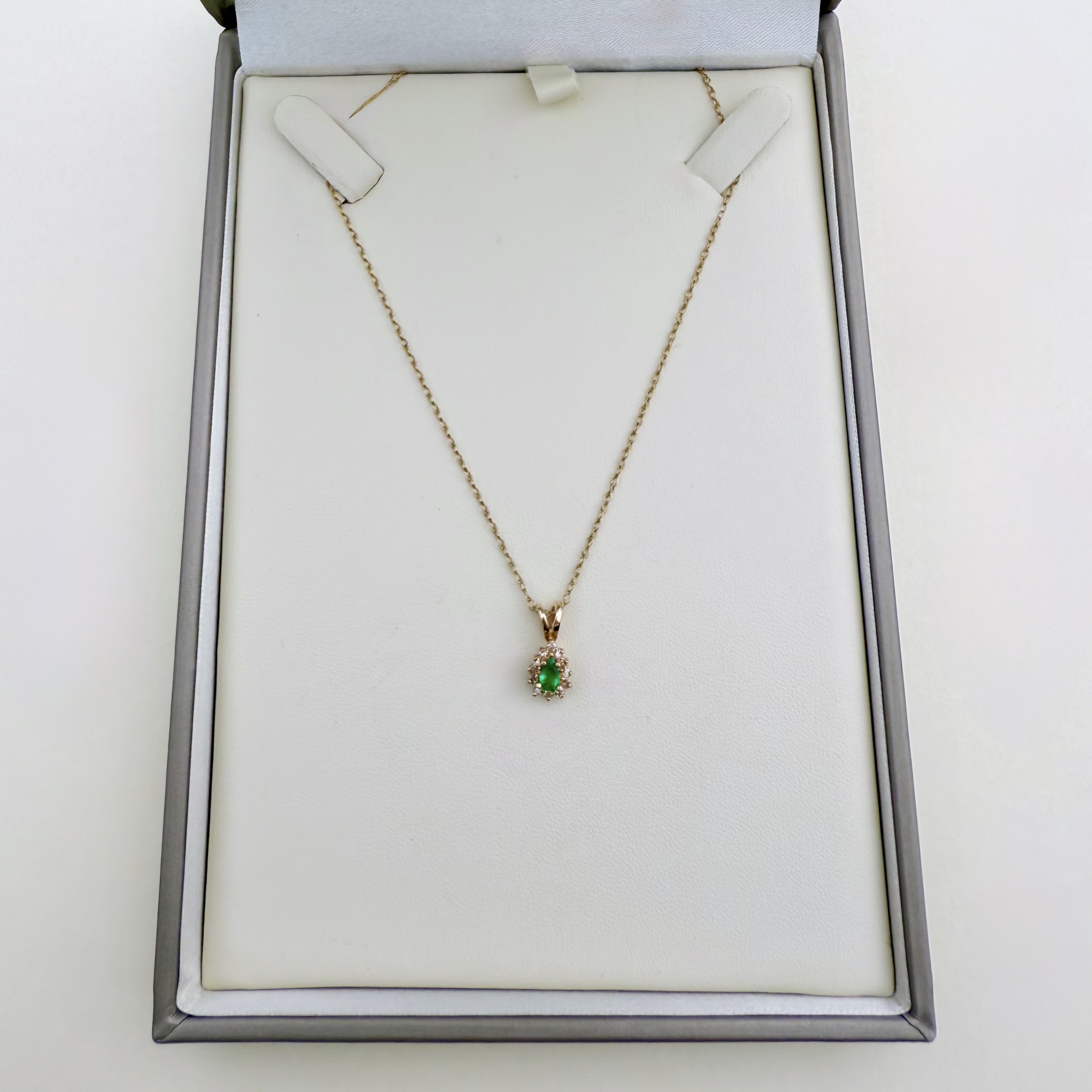 Hallmarked 9ct. Gold Emerald & Diamond Pendant on Chain. NEW STOCK.