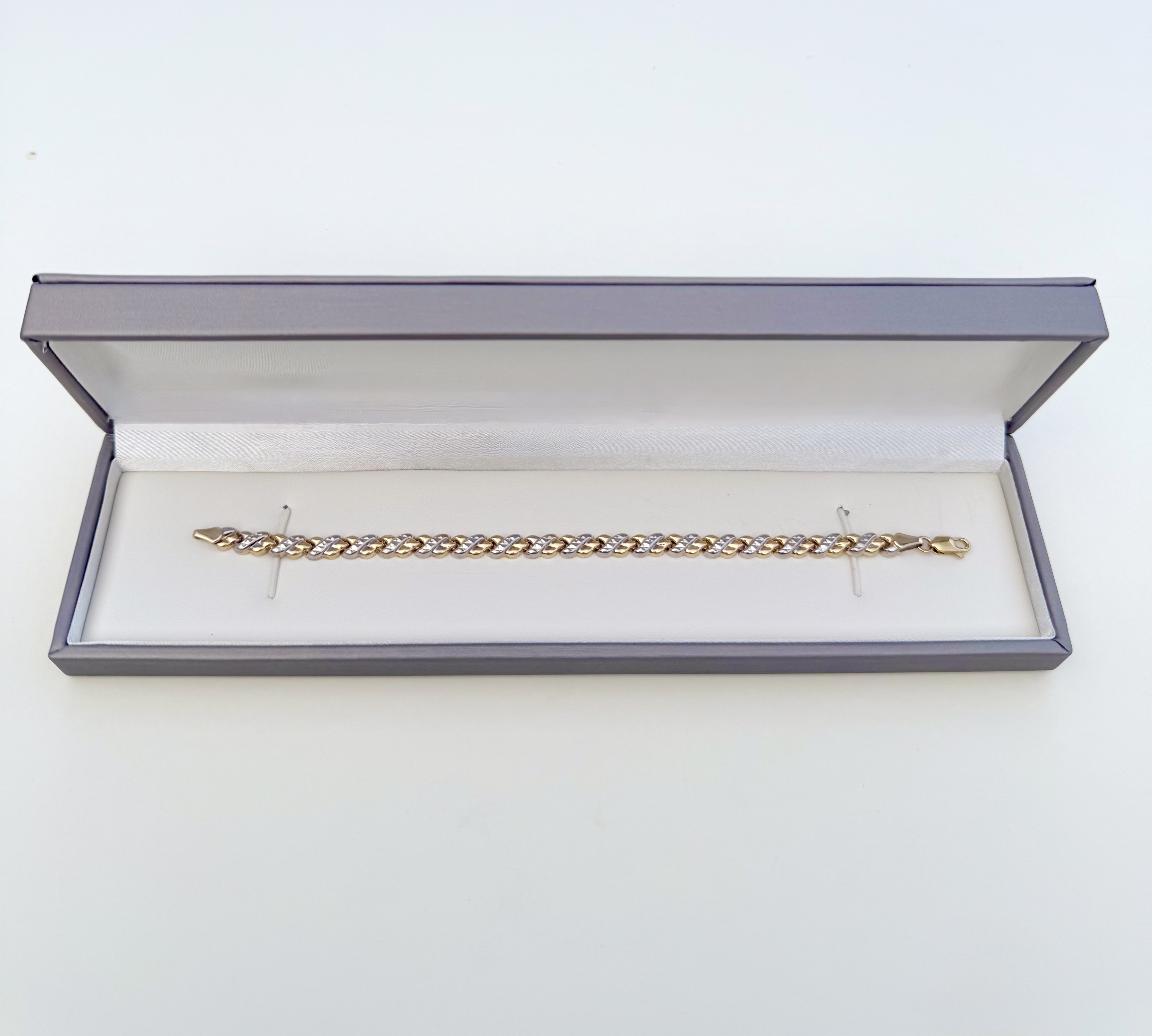 Hallmarked 9ct. Yellow & White Gold 'X' Design Bracelet. NEW STOCK.