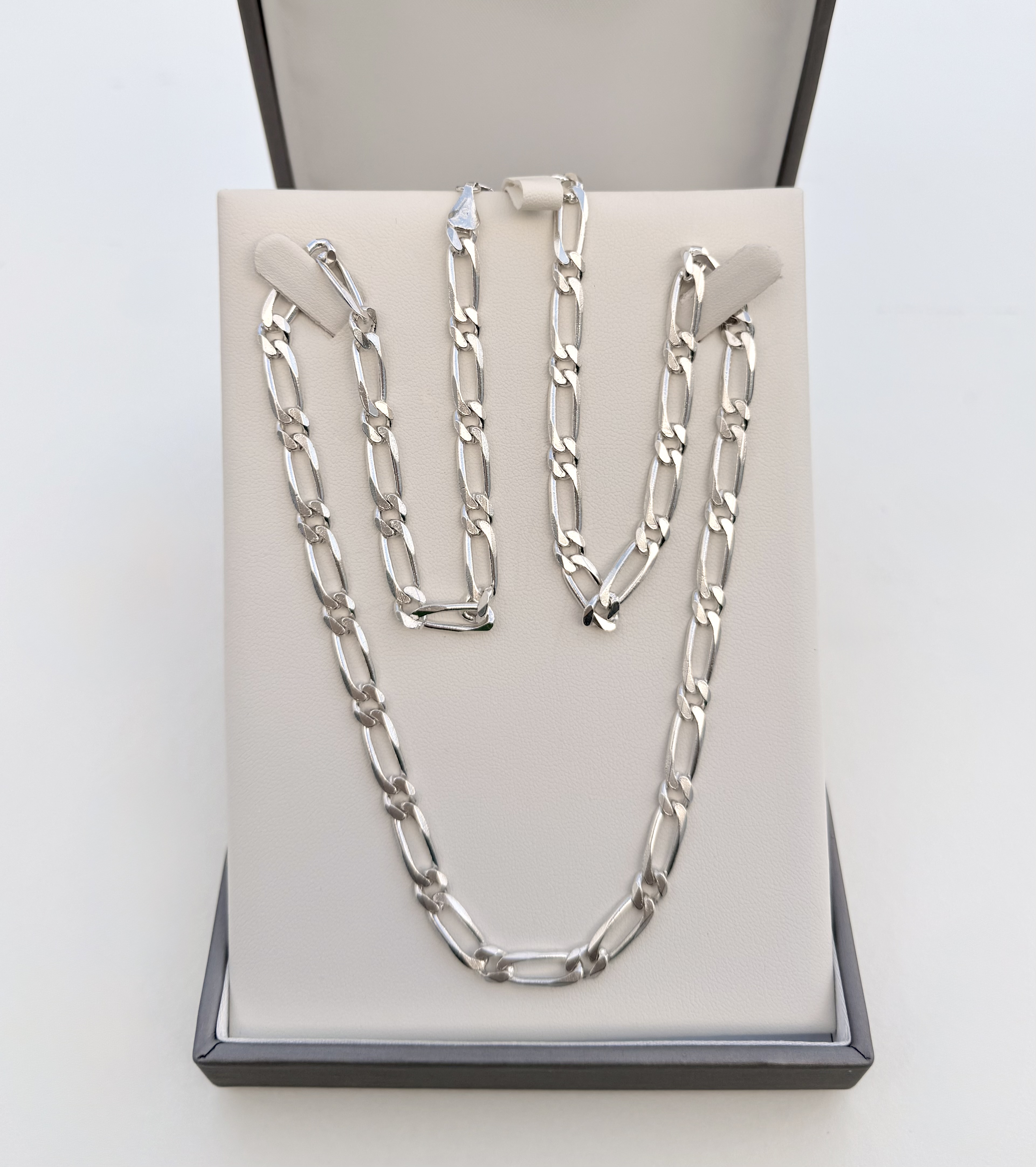 Hallmarked Silver Long Figaro Chain. NEW STOCK.