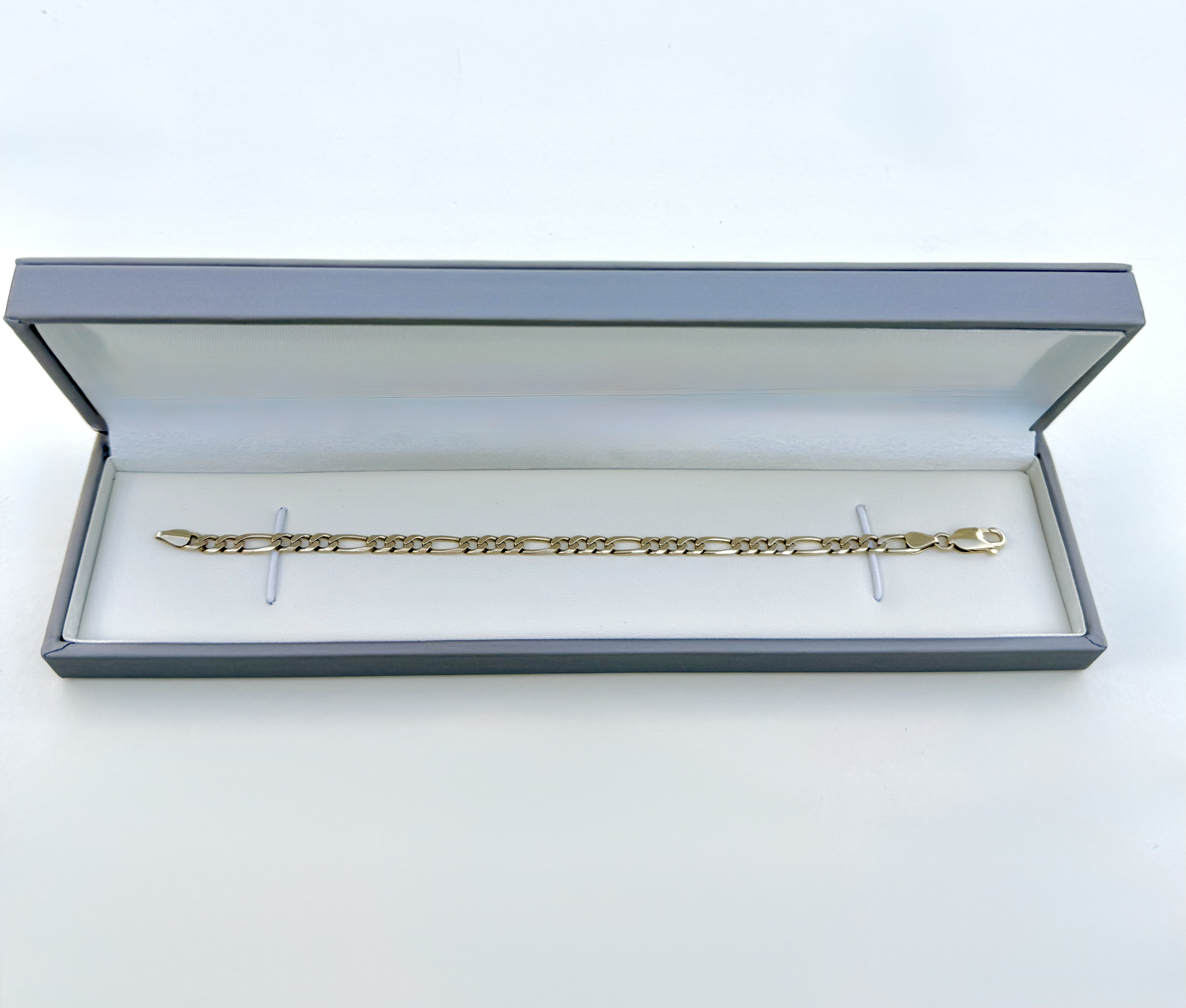 Hallmarked 9ct. yellow gold Figaro bracelet combines elegant style with everyday wearability. Each link is beautifully proportioned, creating an eye-catching design that complements any look.
